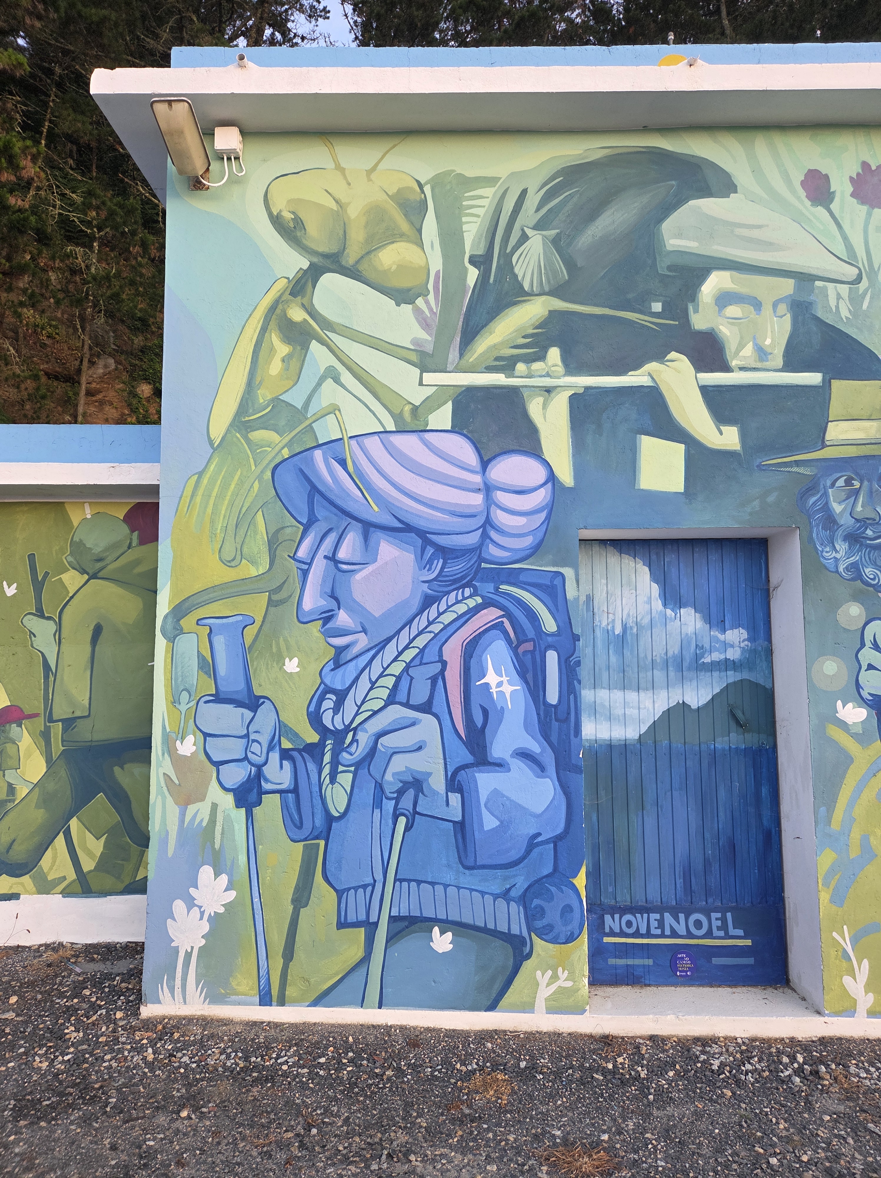 On the walk back, we noticed a cold pilgrim and art by Nove Noel.